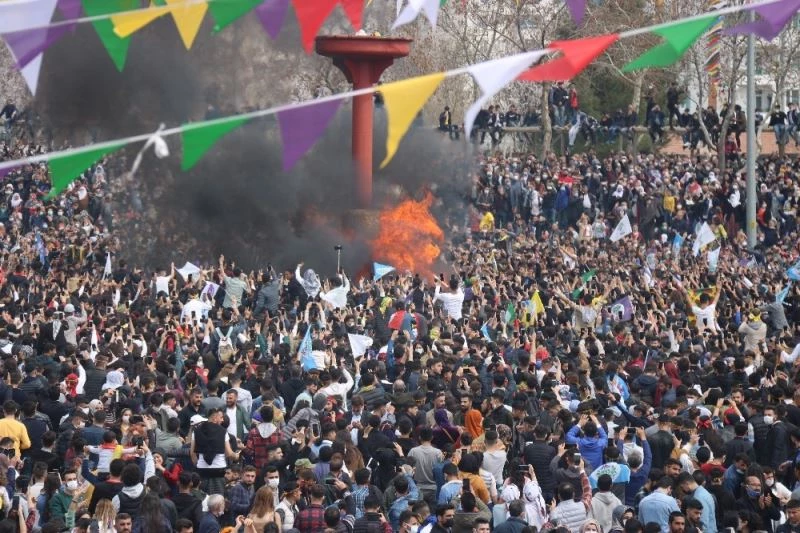 Diyarbakır’da, bir yıl aradan sonra Nevruz Bayramı kutlandı. Yaklaşık 5 bin polisin görev aldığı etkinliğe vatandaşlar, HES kodu sorgulamasının ardından alana alındı. Kutlamalarda terör örgütünü simgeleyen paçavraların açıldığı da görüldü.