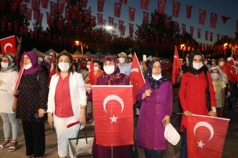 Diyarbakır Valiliği öncülüğünde merkez Kayapınar ilçesindeki 15 Temmuz Şehitler Parkı’nda düzenlenen programa vatandaşlar ellerinde Türk bayraklarıyla adeta akın etti.