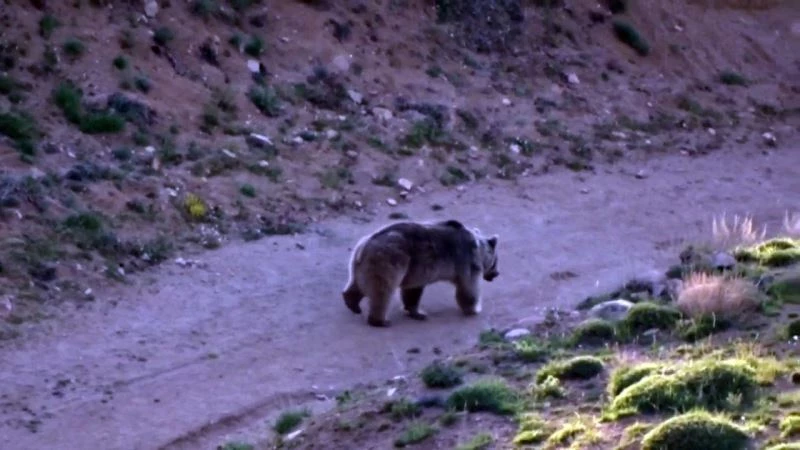 Sivas’ın Şuşehri ilçesinde doğa yürüyüşüne çıkan gezginler karşılaştıkları boz ayının peşine düşüp belgesel tadında görüntüler çekti.