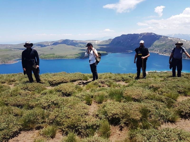 Bitlis Doğa Spor Kulübünün 7 üyesi, Nemrut Krater Gölü etrafını 12 saatte turladı.