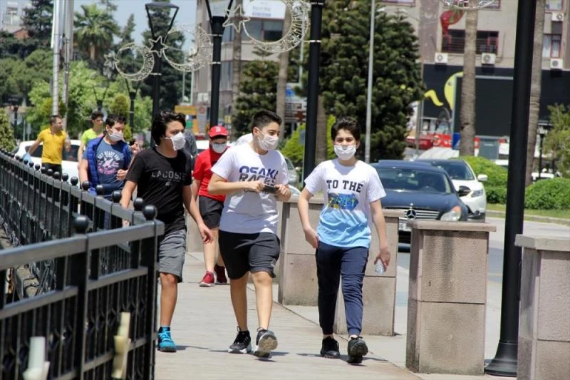 Mersin'de çocuklar, 11.00-15.00 saatlerinde getirilen serbestlik ile uzun bir aradan sonra sokaga çikip günesli havanin tadini çikardi.
