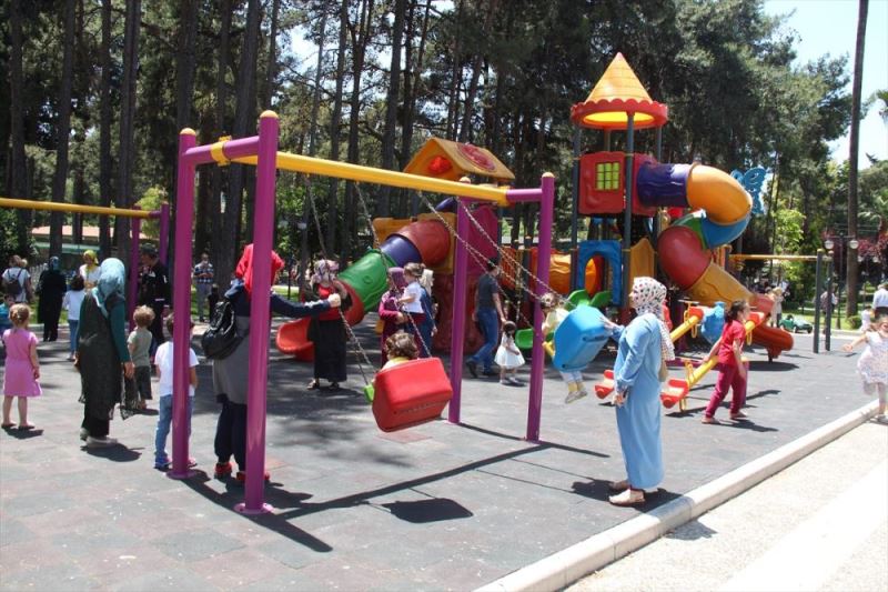 Osmaniye'de de çocuklar oyun parklari ve sokaklarda eglendi. Aileleriyle, yüzlerinde maskeyle parklara gelen çocuklar, sosyal mesafeyi koruyarak yesil alan ve oyun gruplarinin tadini çikardi.