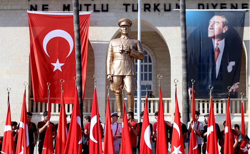 Cumhuriyet Alanı'ndaki törende, Vali Ali Hamza Pehlivan, Akdeniz Bölge ve Garnizon Komutanı Tuğamiral Murat Fırat ve Büyükşehir Belediye Başkanı Vahap Seçer, Atatürk Anıtı'na çelenk sundu.