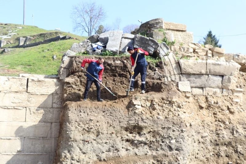 Düzce Belediyesi kazı ekibi tiyatronun doğu aksında kazılara başlayarak batı aksında olan tarihi yapıları gün ışığına kavuşturacak.