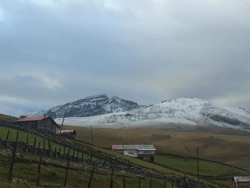 Doğu Karadeniz Bölgesi’nde mevsimin ilk kar yağışı yüksek kesimlerde gerçekleşti. Hava sıcaklıklarının mevsim normallerinde altında seyretmesiyle özellikle 2 bin rakımdan yüksek kesimlerde dün akşam saatlerinden itibaren kar yağışı etkisini gösterdi. Hava sıcaklığının eksi seviyelere düştüğü yüksek kesimler beyaza bürünürken, yeşilin beyaza büründüğü Karadeniz’in yaylaları görsel şölen oluşturdu. Artvin’in Yusufeli ilçesindeki Yaylalar köyü, Trabzon ile Bayburt arasında yer alan Haldizen Dağları’nın zirvesindeki 2 bin 740 metre rakımdaki Aygır Gölü kar yağışı sonrası beyaz örtü ile kaplandı.