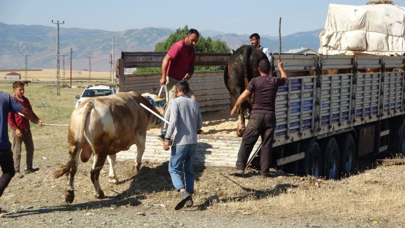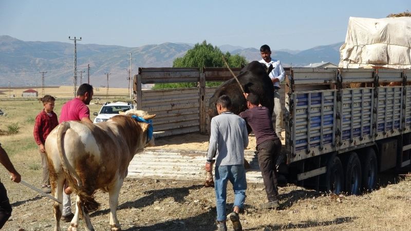 Muş’ta geçimlerini hayvancılıkla sağlayan vatandaşlar, bir yıl boyunca özenle baktıkları tosunları, kurbanlık olarak batı illerine göndermeye başladı.