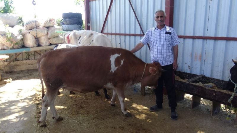 Ay yıldızlı düveyi besleyen Veysel Altın, “Ben bunu 2 buçuk yıl önce pazarda görünce beğenip aldım. Bu zamana kadar besledim. Her annenin asker göndermesi gibi biz de bunu kurbana göndermek niyetindeyiz. Alanlara hayırlı olmasını diliyorum. Bu düve 350 kilogram geliyor. Bunu 10 bin TL’ye satacağız. Kesimi her şeyi içinde bu fiyat istiyoruz. Satışlarımız çok güzel. Aşağı yukarı 75 hayvanın 60 tanesini sattık. Allah’ın izni ile bayramın birinci günü teslim edeceğiz. Bu düveyi görenlerde çok güzel tepki veriyor. İnsanların hoşuna gidiyor. Türk milleti olarak bizler bayrak, vatan sevdalısıyız. Bakan bir daha bakıyor. Ben de bunu küçükken ay yıldızını görerek aldım. Bizde doğmadı, ama biz yetiştirdik” dedi.