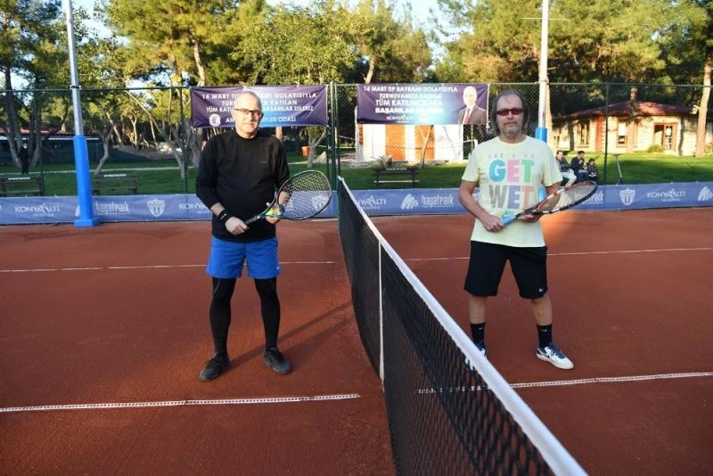 Konyaaltı Belediyesi ile Antalya Tabip Odası, 14 Mart Tıp Bayramı etkinlikleri kapsamında doktorlara yönelik tenis turnuvası düzenleniyor. Konyaaltı Belediye Başkanı Semih Esen de turnuva maçlarını izleyerek, doktorlara başarı diledi.