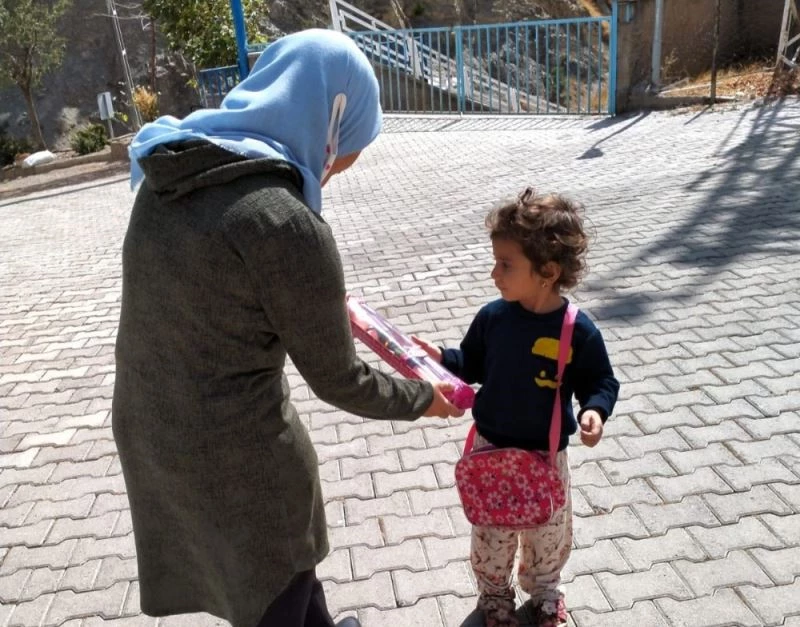 Doku nakli olan Leyla köy köy gezip çocuklara oyuncak dağıtıyor