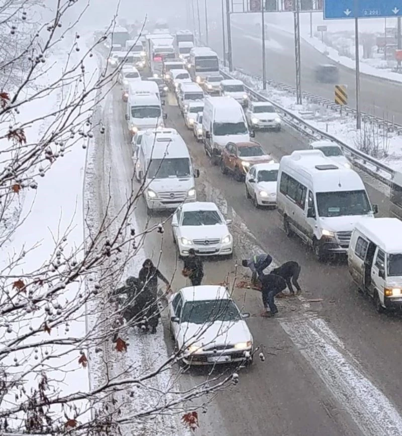 Eskişehir’de sabah erken saatlerden itibaren etkili olan yoğun kar yağışı bazı bölgelerde hayatı adeta felç etti. Çevre yollarında da etkili olan yoğun kar yağışı, trafikte sıkışıklıklara neden oldu. Eskişehir-Ankara kara yolu Matbaacılar Sitesi mevkiinde simit sattığı motosikletiyle yoğun kar yağışına rağmen ilerlemeye çalışan yaşlı bir amca, kayganlaşan yolda dengesini kaybederek düştü. Motosikletinde bulunan simitler ise yola saçıldı. Çevre yolunda seyir halinde bulunan ve durumu fark eden sürücüler ise adeta yolu trafiğe kapatarak simitlerini toplamaya çalışan amcaya yardım etti.