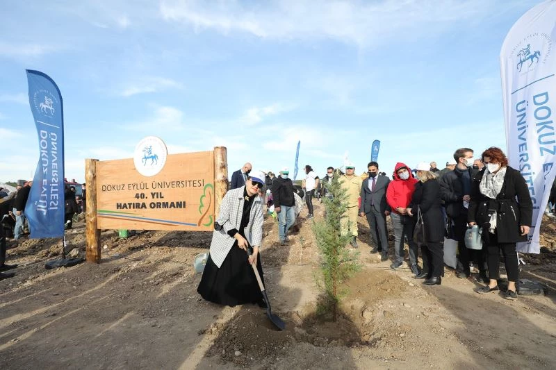Cumhurbaşkanı Recep Tayyip Erdoğan’ın himayesinde, Tarım ve Orman Bakanlığı ile Orman Genel Müdürlüğü’nün koordinasyonunda gerçekleştirilen 11 Kasım Milli Ağaçlandırma Günü etkinlikleri kapsamında Dokuz Eylül Üniversitesi (DEÜ) tarafından Tınaztepe Yerleşkesinde DEÜ 40. Yıl Hatıra Ormanı oluşturuldu. DEÜ Rektörü Prof. Dr. Nükhet Hotar, İzmir’in il ve ilçe bürokrasisi, dış ilişkiler yetkilileri, siyasi parti temsilcileri ile akademisyen, idari personel ve öğrencilerin katıldığı etkinlikte yüzlerce fidan toprakla buluşturuldu. İlk etapta kara ve mavi servi, zakkum, lavanta, defne, zeytin ve kızılçam fidanlarının dikildiği Dokuz Eylül 40.Yıl Hatıra Ormanında bütün üniversite mensupları adına birer ağaç yer alacak. Olası yangınlara karşı bir rüzgar perdesinin de oluşturulacağı hatıra ormanında, biyoçeşitlilik ön planda tutulurken dikilen fidanların karbondioksit depolama kapasitesine de dikkat edildi.
