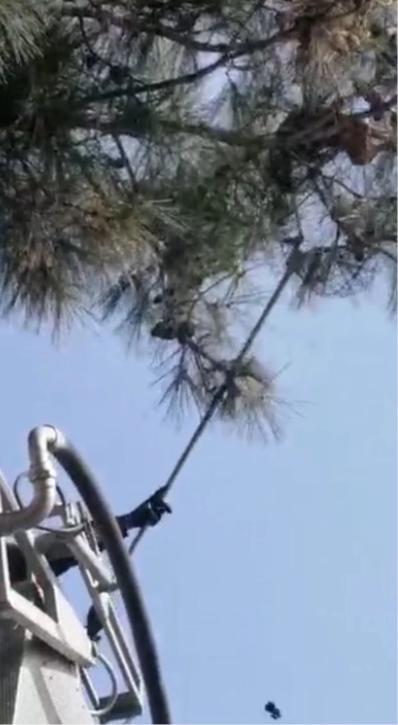 Dokuz gündür ağaçta mahsur kalan kedinin yardımına Kuşadası Belediyesi koştu