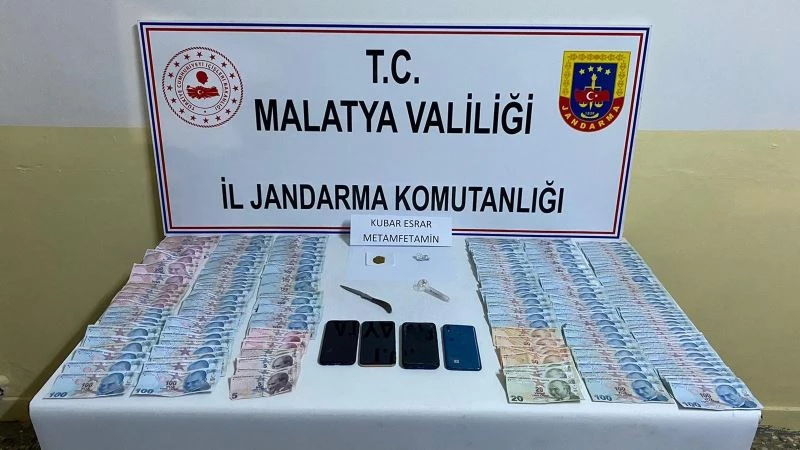Şüphelilerin üzerinde ve araçta yapılan arama neticesinde 17 bin 465TL, 4 adet cep telefonu, 5 gram kubar esrar, 1 gram met amfetamin ele geçirildi.