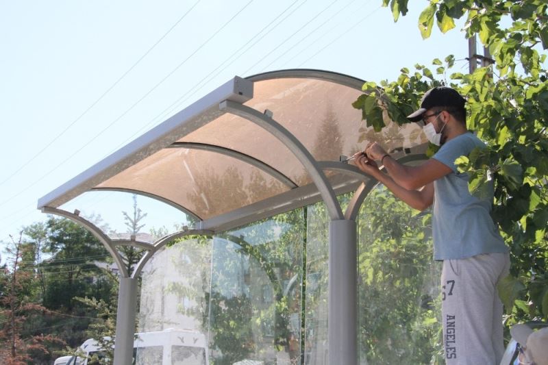 Yapılan çalışmalarla dolmuş duraklarının kırık ya da hasar görmüş camlarının değiştirilmesinin yanı sıra oturma ve bekleme alanlarında da düzenleme yapılıyor. Belediye ekipleri, “Bakımları yapılan duraklara herhangi bir reklam, afiş ve diğer materyallerin yapıştırılmaması ve durakların temiz tutulması hususunda vatandaşlarımızın duyarlı davranmasını rica ediyoruz” değerlendirmesini yaptı.