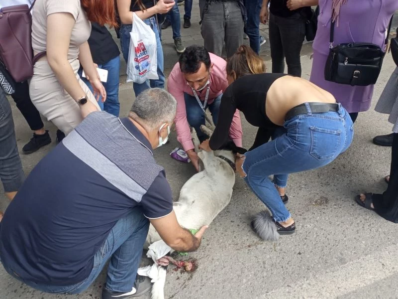 Dolmuşun çarptığı köpek için dakikalarca kalp masajı yaptılar