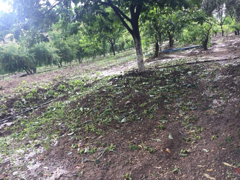 Adıyaman’ın Sincik ilçesinde etkili olan dolu yağışı ekili alanlara ve bahçelere zarar verdi.
