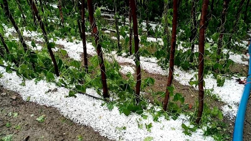 Köyde ikamet eden Kazım Karakuş dolu yağışının 10 dakikadan fazla sürdüğünü ifade ederek, bahçelerdeki mahsullerinin tamamının zarar gördüğünü kaydetti.