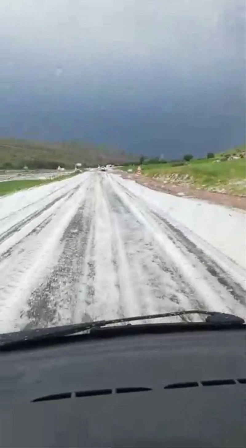 Sivas merkeze bağlı Çeltek köyünde etkili olan dolu yağışı araziyi beyaza bürüdü.
