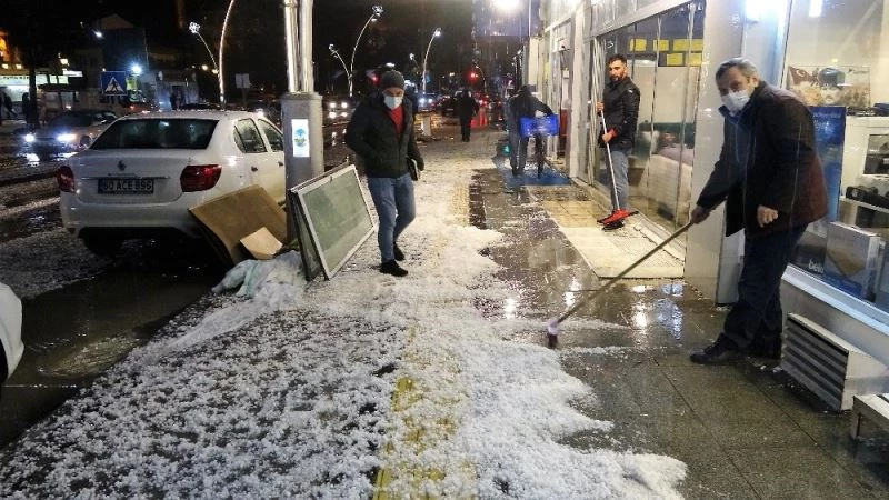 Tokat’ta etkili olan dolu yağışı ile caddeler beyaza büründü.