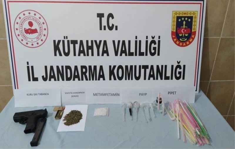 Kütahya İl Jandarma Komutanlığı ve Domaniç İlçe Jandarma Komutanlığı ekiplerince yapılan çalışmalar neticesinde, plakası tespit edilen bir aracın Domaniç ilçesine uyuşturucu madde getireceği bilgisine ulaştı. Bahse konu araç ekipler tarafından Domaniç ilçesi Durabey mevkiinde durduruldu. Araçta yapılan aramada, 25 gram metamfetamin, 15 gram bonzai maddesi, 45 adet uyuşturucu içiminde kullanılan aparat ve 1 adet kurusıkı tabanca ele geçirildi.