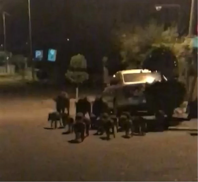 Muğla’nın Marmaris ilçesinde, aç kaldıkları için şehir merkezine inen yaban domuzu sürüleri, soaklara kediler için bırakılan mamaları yedi.