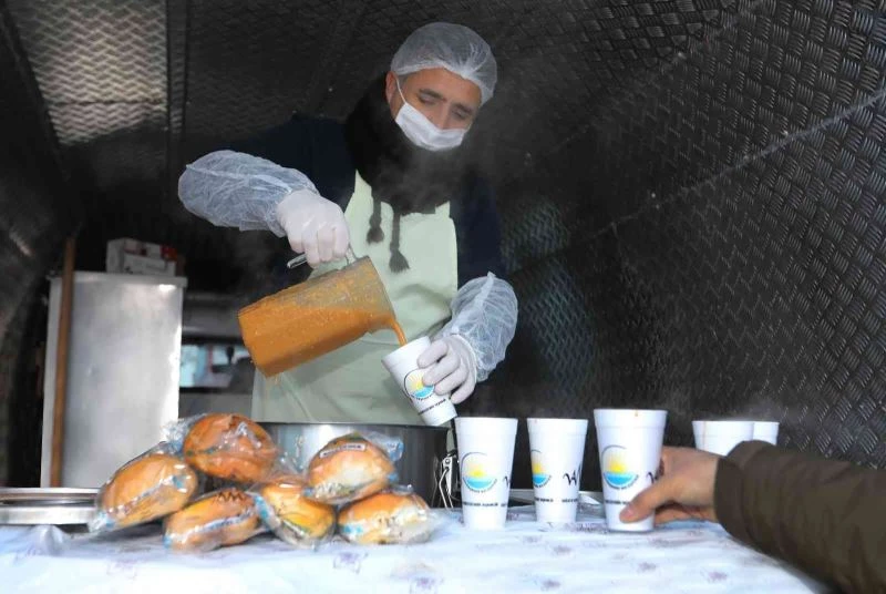 Van Büyükşehir Belediyesi, soğuk havalardan dolayı kentin 3 farklı noktasında ücretsiz sıcak çorba dağıtımına başladı.
