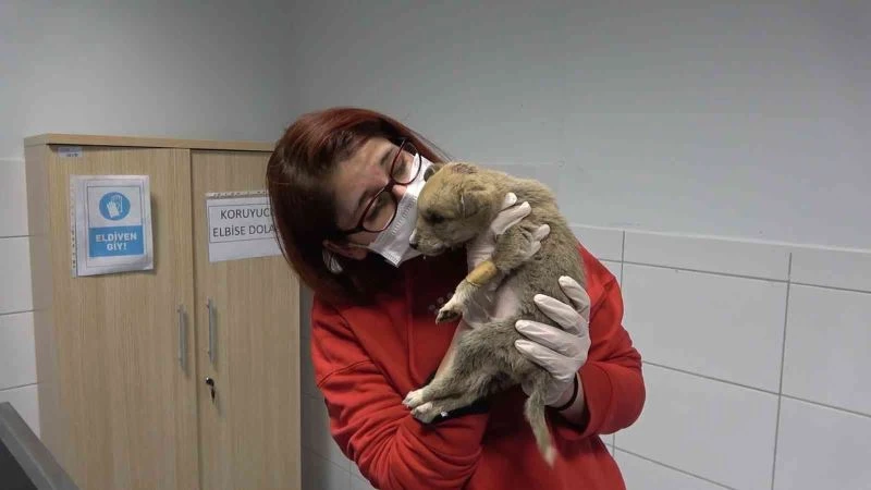 Donmaktan son anda kurtarılan kurt yavrusu tedavi edildi