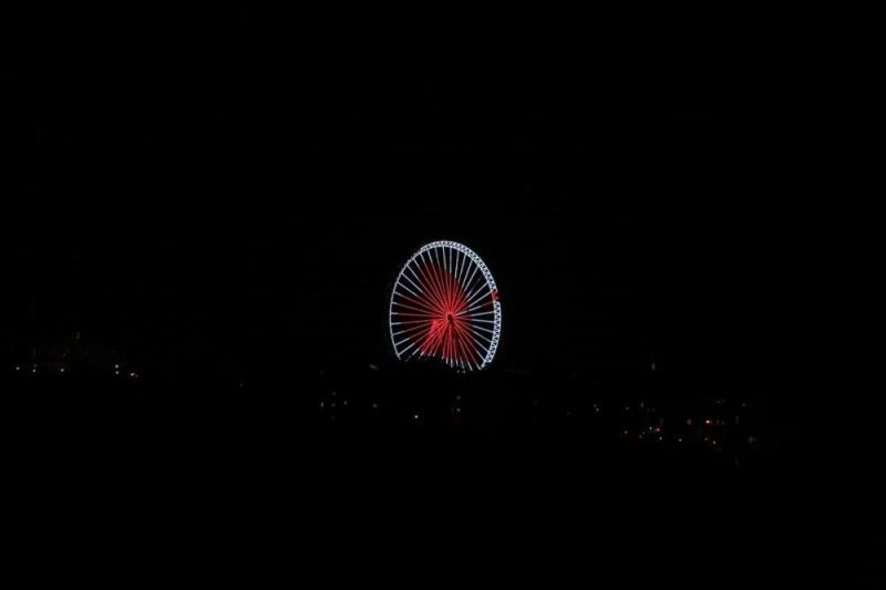 Konyaalti ilçesi Pinarbasi Mahallesi Atatürk Bulvari'nda kurulu, üç boyutlu görsellerin oynatilabildigi devasa dönme dolaba, "Organ bagislayin cana can katin" slogani yansitildi.