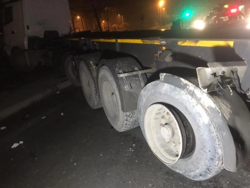 Arnavutköy’de seyir halindeyken dorsesi açılan hafriyat kamyonunun dorsesi üst geçide çarptı. Dorsesi kopan kamyon kontrolden çıkarak karşı şeritten gelen araca çarptı. Kazada iki kişi yaralandı.
