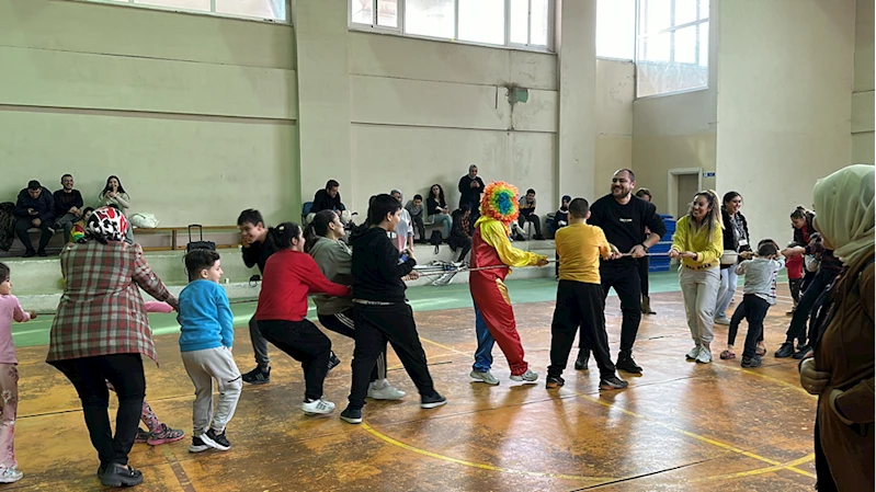 İlçe Gençlik ve Spor Müdürlüğü ile Nazmiye Muratlı Gençlik Merkezince spor salonunda düzenlenen etkinlikte çocuklar, parkurda mücadele etti, halat çekme oynadı.