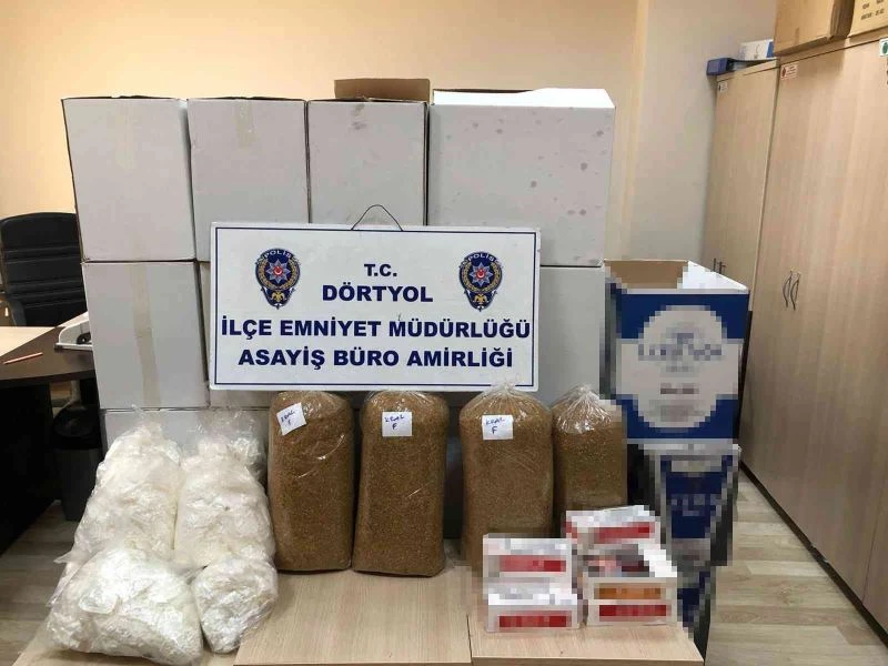 Hatay’ın Dörtyol ilçesinde bir evde yapılan aramada 184 bin 400 adet gümrük kaçağı makaron, 22 kilo 800 gram kıyılmış tütün ele geçirildi.
