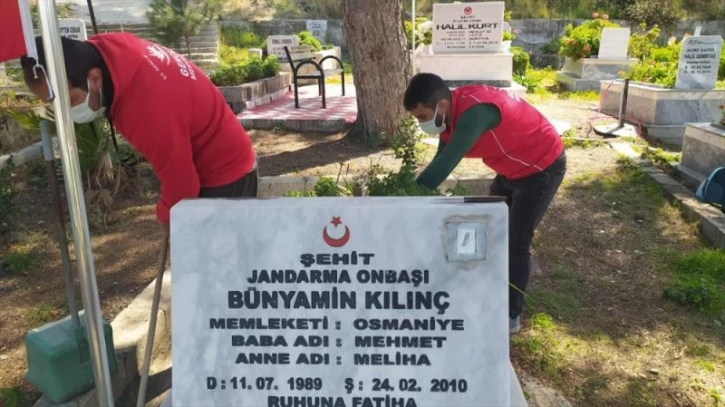 HATAY - Dörtyol ilçesinde Şehitler Haftası münasebetiyle Nazmiye Muratlı Gençlik Merkezi'nde görevli gençlik liderleri, şehit mezarlarını ziyaret ederek temizlik ve bakımlarını yaptı.