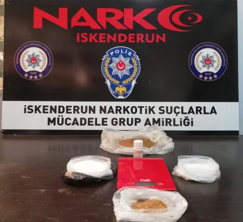 Edinilen bilgiye göre, İskenderun Narkotik Suçlarla Mücadele Grup Amirliği ile Dörtyol İstihbarat Büro Amirliği ekiplerinin koordineli yaptığı çalışmada; içerisinde M.S. ile F.U. isimli şahısların bulunduğu bir otomobili takibe aldı. Polis bir süre sonra aracı durdurup yaptığı aramada araçta ve şahısların üzerlerinde, 165 gram Metamfetamin, 148 gram Sentetik Kannabinoid, 30 gram sıvı AMG ve 1 adet hassas terazi ele geçirdi. 2 şüpheli gözaltına alındı.