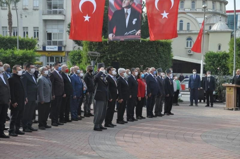 İstasyon Caddesi'nde gerçekleşen törende, Kaymakam Ali Murat Kayhan ve Belediye Başkanı Fadıl Keskin tarafından Atatürk Anıtı'na çelenk sunuldu.