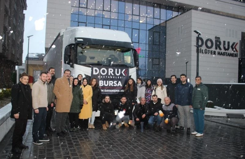 Doruk Nilüfer Hastanesi’nde toplanarak AFAD ve Kızılay ile koordineli bir şekilde Hatay Sahra Hastanesi’ne gönderilen sağlık malzemeleri arasında, serumlar, sarf malzemeleri ve çocuk bezleri ile değişik hastalıkların tedavisinde kullanılan ilaçların yanı sıra Hatay Sahra Hastanesi’nin elektrik ihtiyacını karşılayacak 57 kVA’lık bir jeneratör bulunuyor.