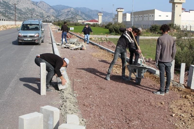 Antalya Büyükşehir Belediyesi, Döşemealtı ilçesi Kırkgöz yolunda kaldırım çalışması yapıyor.