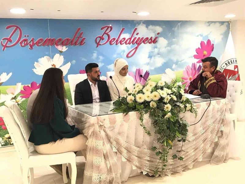 Antalya’nın Döşemealtı ilçesinde 14 Şubat Sevgililer Günü’nde hayatlarını birleştirmek isteyen çiftler, nikah dairelerinde yoğunluk oluşturdu. Özel günlerini 14 Şubat 2022 tarihine denk getirerek akılda kalıcı bir tarihte evlenmek isteyen 14 kişi, Döşemealtı Belediyesi’nde mutluluğa ‘evet’ dedi.
