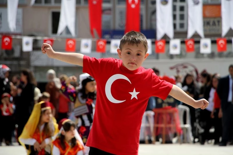 Manisa’nın Kula ilçesinde 23 Nisan Ulusal Egemenlik ve Çocuk Bayramı ile TBMM’nin 102. açılış yıldönümü dolayısıyla hazırlanan kutlama programı renkli görüntülere sahne oldu. Öğrencilerin halk oyunları gösterisi yaptığı sırada alana çıkan Kula Anaokulu öğrencisi down sendromlu 6 yaşındaki Talha Topal, katılımcılar tarafından ilgiyle izlendi.