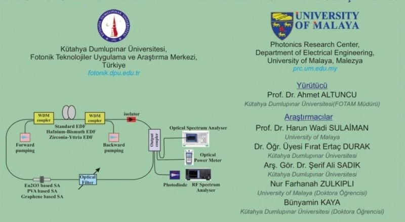 Projeyle ilgili yapılan açıklamada,” Projede, FOTAM bünyesinde şu ana kadar TÜBİTAK, DPT ve BAP destekleriyle başarıyla tamamlanan ve yüksek hızlı telekomünikasyon sistemlerinin omurgasını oluşturan geniş bant optik ağlar için yenilikçi (C+L Band) geniş bant erbiyum katkılı fiber yükselteçler (wideband EDFA) alanında yürütülen Ar-Ge faaliyetlerinden yararlanılacak. Projenin Malezya grubu ile yapılacak iş birliği ile geniş bantta yüksek kararlılıkta çalışan dalga boyu ayarlanabilir halka tipi fiber lazerin tasarımında farklı yapıdaki doyurulabilir soğurucular kullanılarak sırası ile pasif tabanlı Q-anahtarlamalı ve mod-kilitli darbeli fiber lazer tasarımı gerçekleştirilmesi hedefleniyor. Desteklenen projede, literatürde sunulan çalışmalara kıyasla daha geniş bir çalışma dalga boyu aralığında nanosaniye atımlı çalışabilen pasif tabanlı Q-anahtarlamalı hem de mod-kilitli fiber lazerlerin tasarımı yapılarak deneysel karakterizasyonunun gerçekleştirilmesi ve prototip cihaz haline getirilen sistemin performans testlerinin tamamlanmasıyla haberleşme sektörünün temel cihazlarından birisi olarak endüstrinin kullanımına sunulması hedeflenmekte. Aynı zamanda, geniş bantlı fiber optik ağlar için yenilikçi teknolojiler ve sistemlerin geliştirilmesi alanında yurt dışı iş birlikleriyle birlikte akademik çalışmaların potansiyelinin zenginleştirilmesi, BİT öncelikli alanında bilgi ve teknoloji birikiminin ülkemize ve DPÜ FOTAM’a kazandırılması amaçlanmakta olup, proje çalışmaları ülkemizde yürütülen öncü çalışmalardan birisi olacaktır. Proje çalışmalarında kullanılacak OSA, TLS, PM, Fusion Splicer gibi deneysel tasarım, geliştirme, test ve karakterizasyon çalışmalarının gereçleri büyük oranda DPÜ FOTAM Fotonik Araştırma Laboratuvarında bulunmakta olup eksik kalan pasif ve aktif optik elemanlar proje kapsamında temin edilecek” ifadelerine yer verildi.