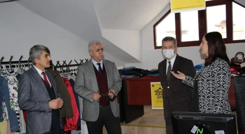 Giysilerin toplanıp sergilendiği alanı ziyaret eden Rektör Uysal, Doç. Dr. Nilüfer Dalkılıç’tan projenin ayrıntıları hakkında bilgi alıp bağışlanan giysileri inceledi.