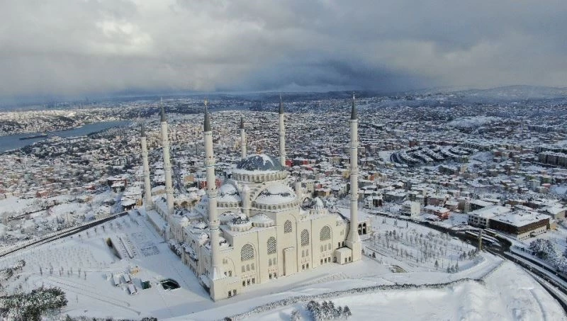 (Drone) Beyaz örtüyle kaplanan Çamlıca Camii hayran bıraktı