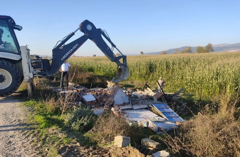 Manisa’da suları çekilerek kuruma noktasına gelen Marmara Gölünün arazisini tarım alanına çevirmek isteyenlerden sonra yine Gölmarmara ilçesinde DSİ ve Milli Emlak arazilerine hayvan damı ve depo yapanlarda tespit edildi. DSİ ve Milli Emlak arazisi olan alanda işgalde bulunan yapılar jandarma denetiminde yıkılırken benzer durumdaki işgallerin sonlandırılması için çalışmaların devam edeceği bildirildi.