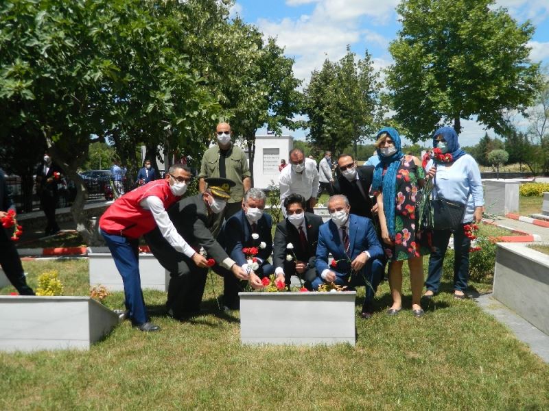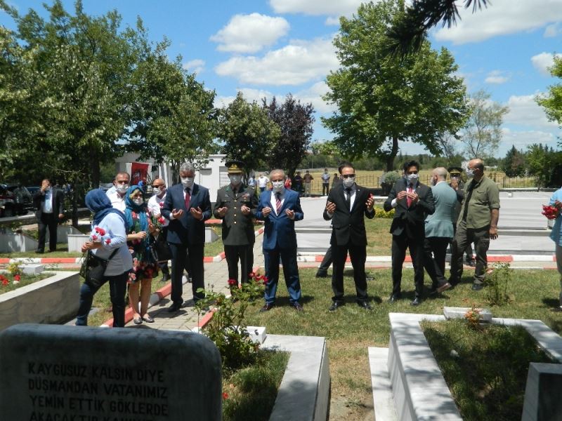 Ardından şehit kabirleri ziyaret edilerek şehitlerin ruhuna dua okundu ve mezarlara karanfil bırakıldı.