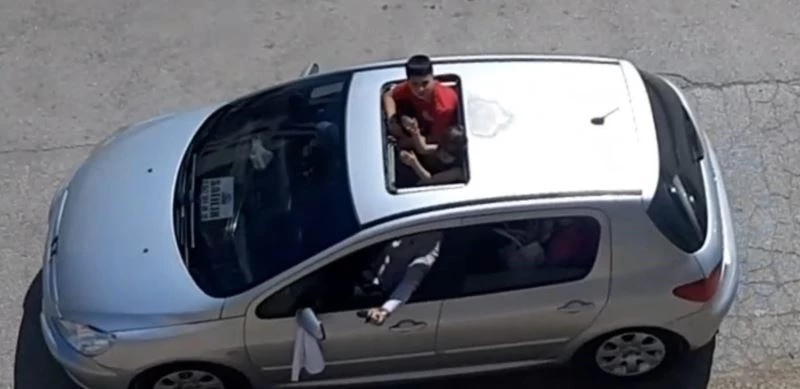 İzmir’in Ödemiş ilçesinde düğün konvoyunda üstü açık arabadan silahla havaya ateş açıldığı anlar bir vatandaşın cep telefonu kamerasına yansıdı.