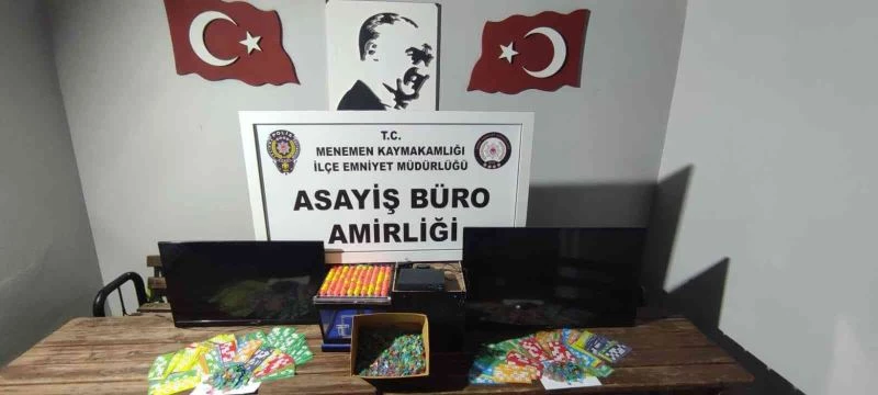 Menemen İlçe Emniyet Müdürlüğü Asayiş Büro Amirliği ekipleri, ilçede bulunan bir düğün salonunun perdelerinin çekili olduğunu ve içeride ise ışıkların yandığını fark etti. Bunun üzerine salona giren ekipler ‘kandil günü’ tombala oynayan 41 kişiye suçüstü yaptı. Savcılık talimatı ile polisler tarafından düğün salonunda yapılan aramalarda; 14 masada 200 adet tombala oyun kartı, yüklü miktarda renkli oyun pulları, 90 adet şeffaf camlı tombala makinesi ve 2 adet LCD televizyon ele geçirildi. Ayrıca, düğün salonundaki 1 adet kamera kayıt cihazına da polislerce el konuldu.