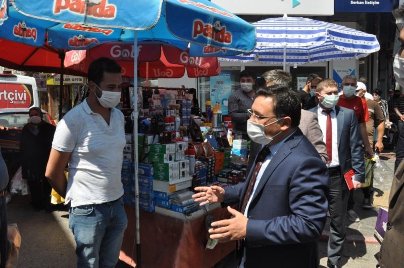 Vali Çiçek, Belediye Başkan Yardımcısı Süleyman Karakuş ve vali yardımcıları ile sokakta ‘Korna Virüs’ denetimi yaptı. Kent merkezinde işlek cadde ve sokaklarda yapılan denetimde Vali Çiçek maske ve sosyal mesafe konusunda vatandaşları uyararak özellikle maskelerin doğru takılması hususundaki hassasiyetlerini iletti.