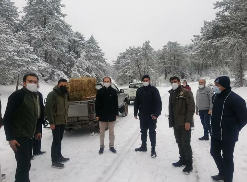 Kütahya Orman Bölge Müdürlüğü yoğun kış şartlarında aç kalma tehlikesi ile karşı kaşıya kalan yaban hayvanlarının beslenmesi için doğaya yem bırakıyor.
