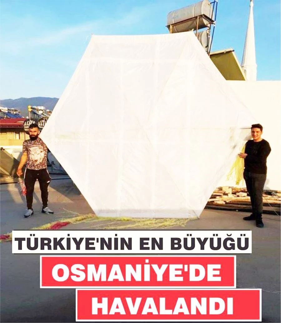 Kadir Karayiğit isimli gencin yaptığı 5 metrelik devasa uçurtma ise Osmaniye semalarında Türk bayrağı ile süzüldü.