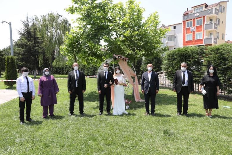 Korona virüs önlemleri kapsamında 1 Haziran itibariyle normalleşme adımlarının hayata geçirilmesi ile evlenecek olan çiftlerin düğün hazırlıkları da başladı. Kocaeli’nin Körfez ilçesinde de çiftler, alınan sosyal mesafe önlemleri ile dünya evine giriyor. Körfez Belediyesi, yeni normal hayata geçilmesinin ardından Türkiye’de bir ilki gerçekleştirdi. Binlerce çiftin hayali olan evlilik, kır düğünü konseptiyle vatandaşların hizmetine sunuldu. Körfez Belediye Başkanı Şener Söğüt ise mutlu günlerinde çiftleri yalnız bırakmadı.