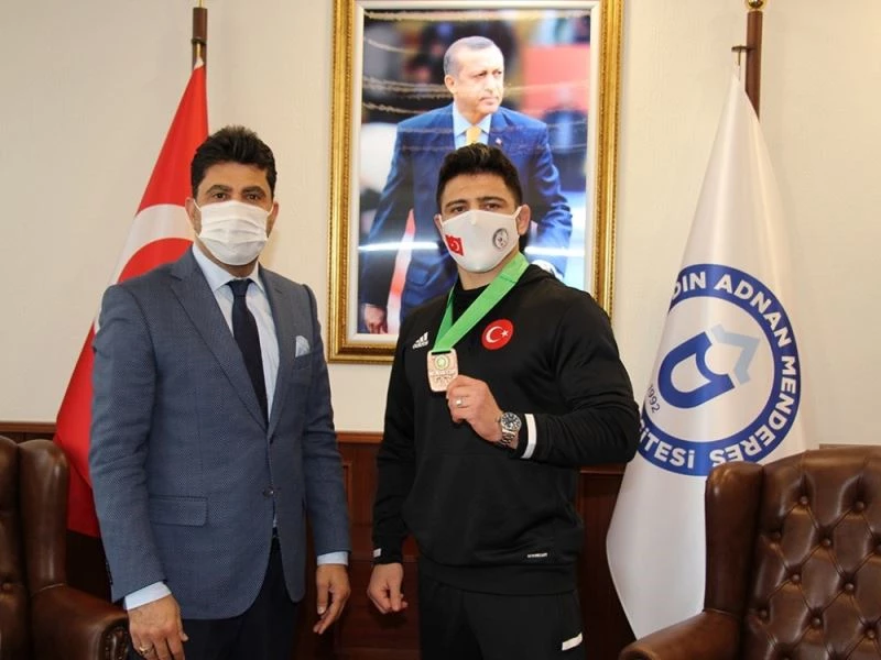 Sırbistan’ın başkenti Belgrad’da gerçekleşen şampiyonada 72 kiloda mindere çıkarak Dünya 3.’sü olan Adnan Menderes Üniversitesi Spor Bilimleri Fakültesi mezunu Cengiz Arslan ve Spor Bilimleri Fakültesi Dekan Yardımcısı Doç. Dr. Reşat Kartal, ADÜ Rektörü Prof. Dr. Osman Selçuk Aldemir’i makamında ziyaret etti.